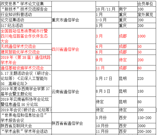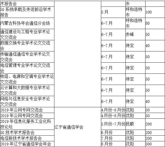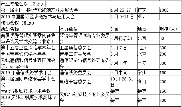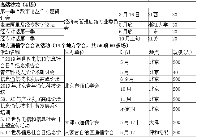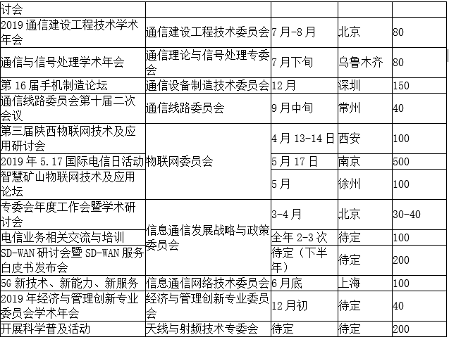 中国通信学会(含各省)2019年学术及产业交流活动计划.docx