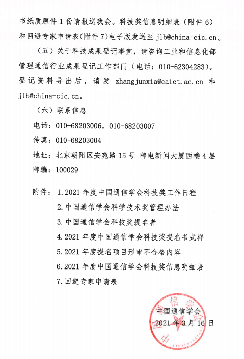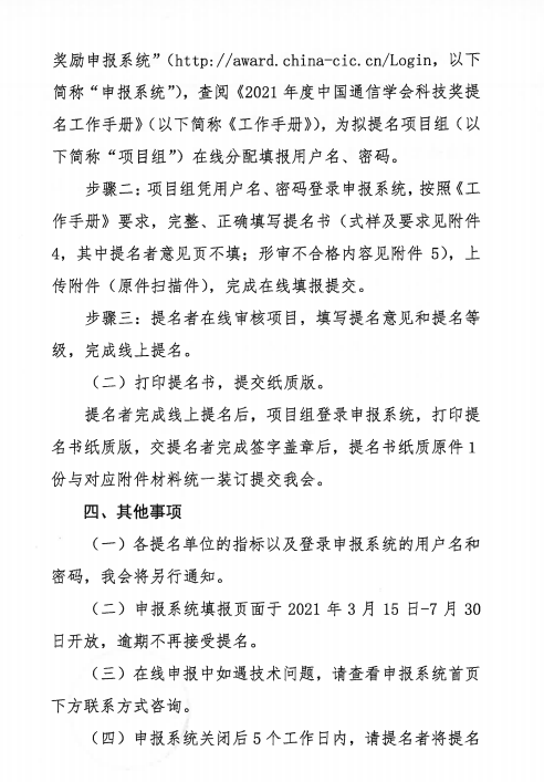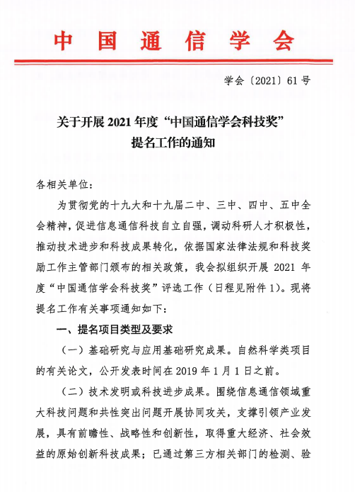 关于开展2021年度“中国通信学会科技奖”提名工作的通知