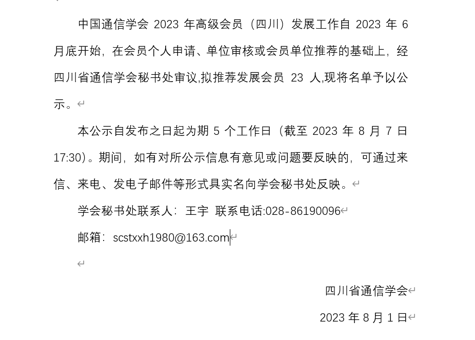 关于推荐发展中国通信学会2023年高级会员(四川)的公示