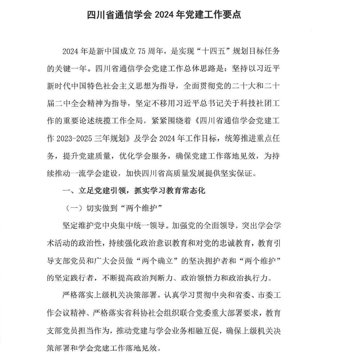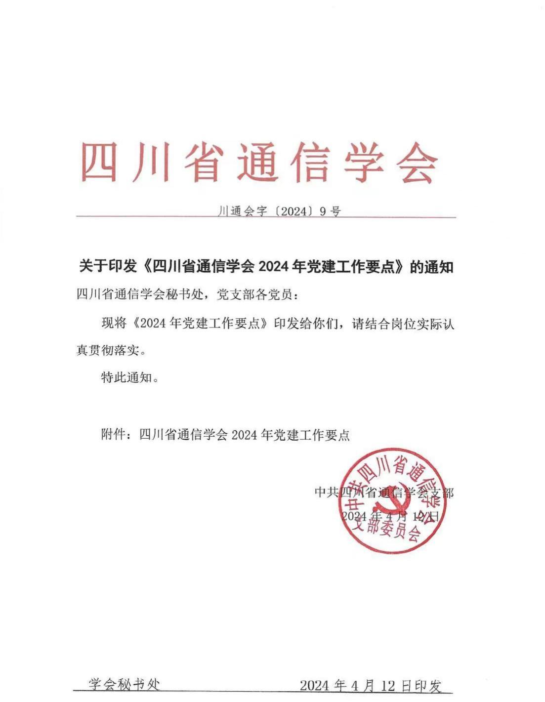 关于印发《四川省通信学会2024年党建工作要点》的通知
