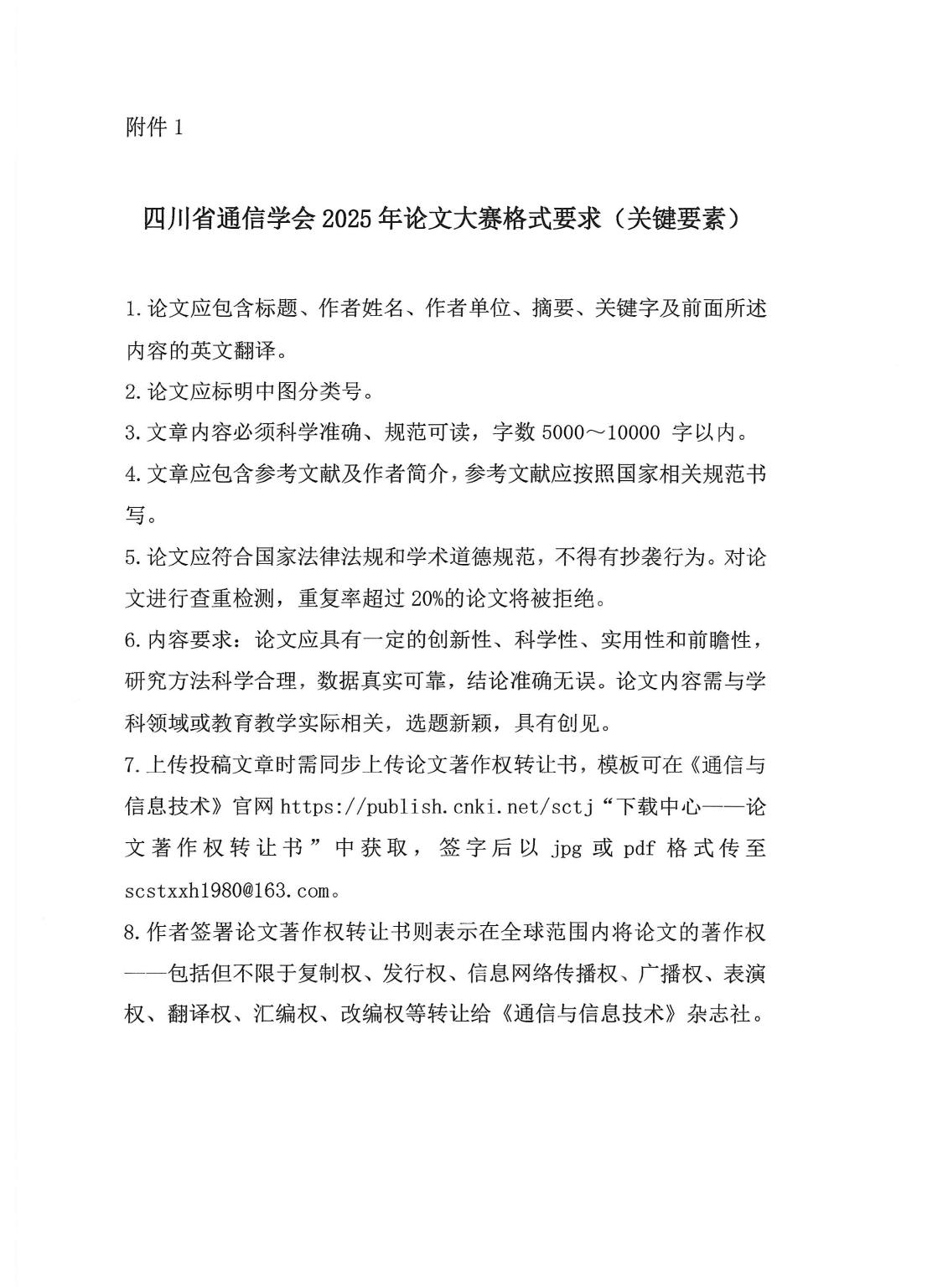 附件1:四川省通信学会2025年论文大赛格式要求(关键要素).docx