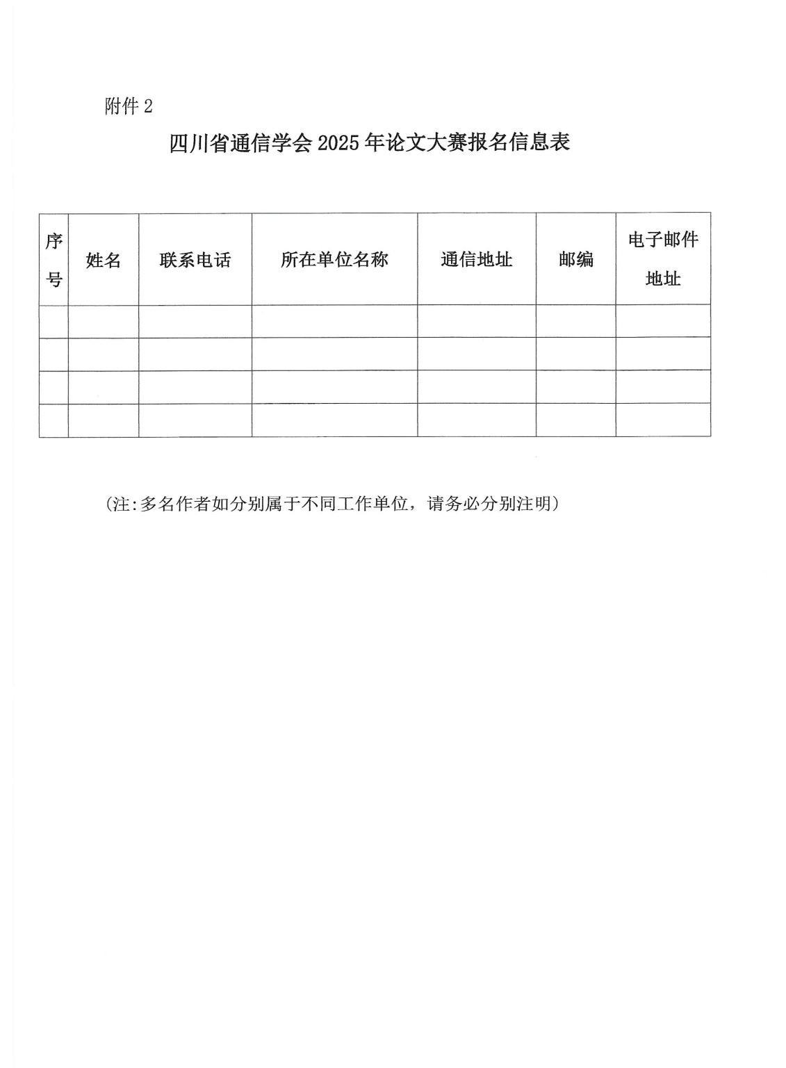 附件2:四川省通信学会2025年论文大赛报名信息表.docx