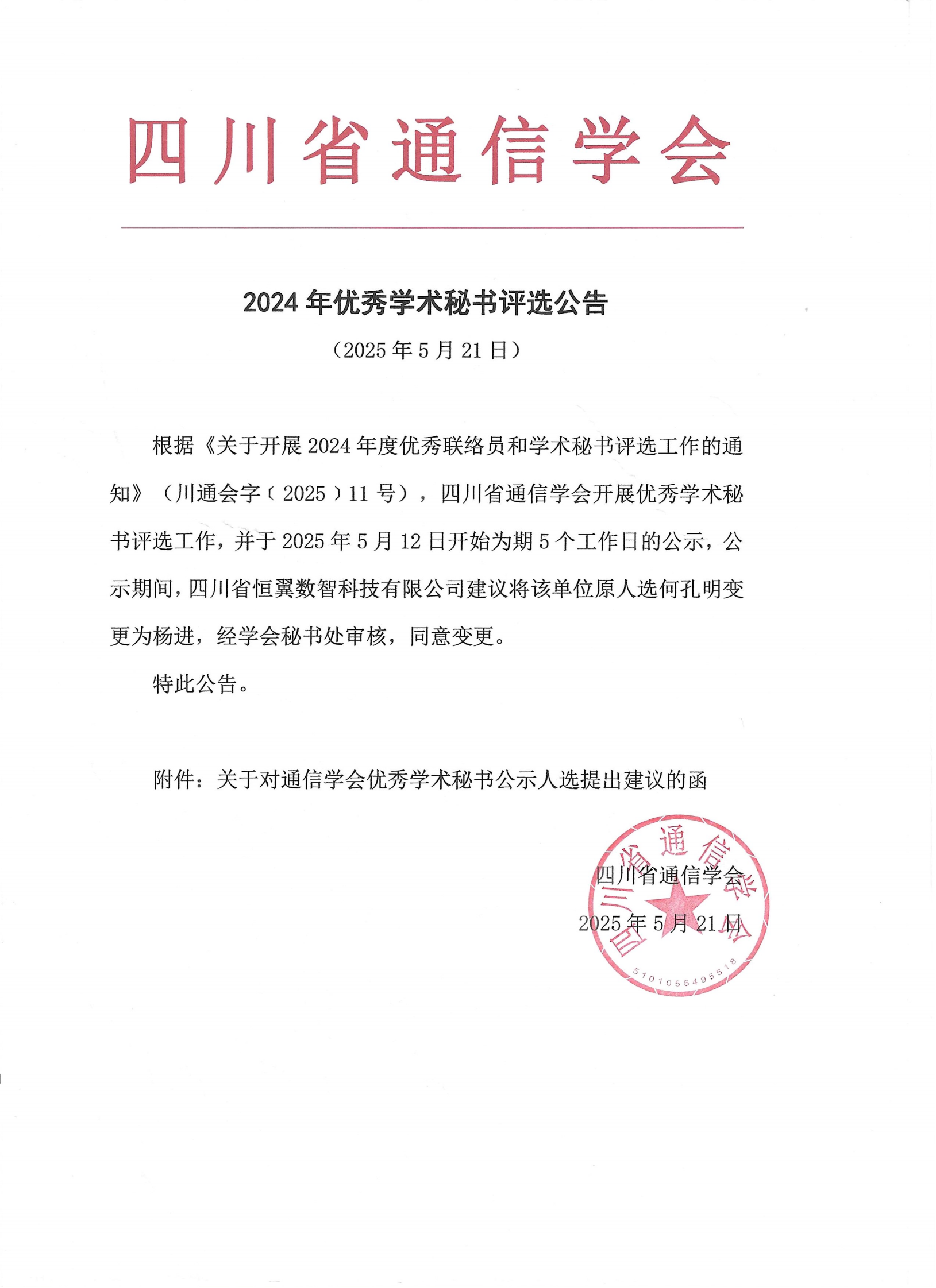 公告 | 四川省通信学会优秀学术秘书评选公告