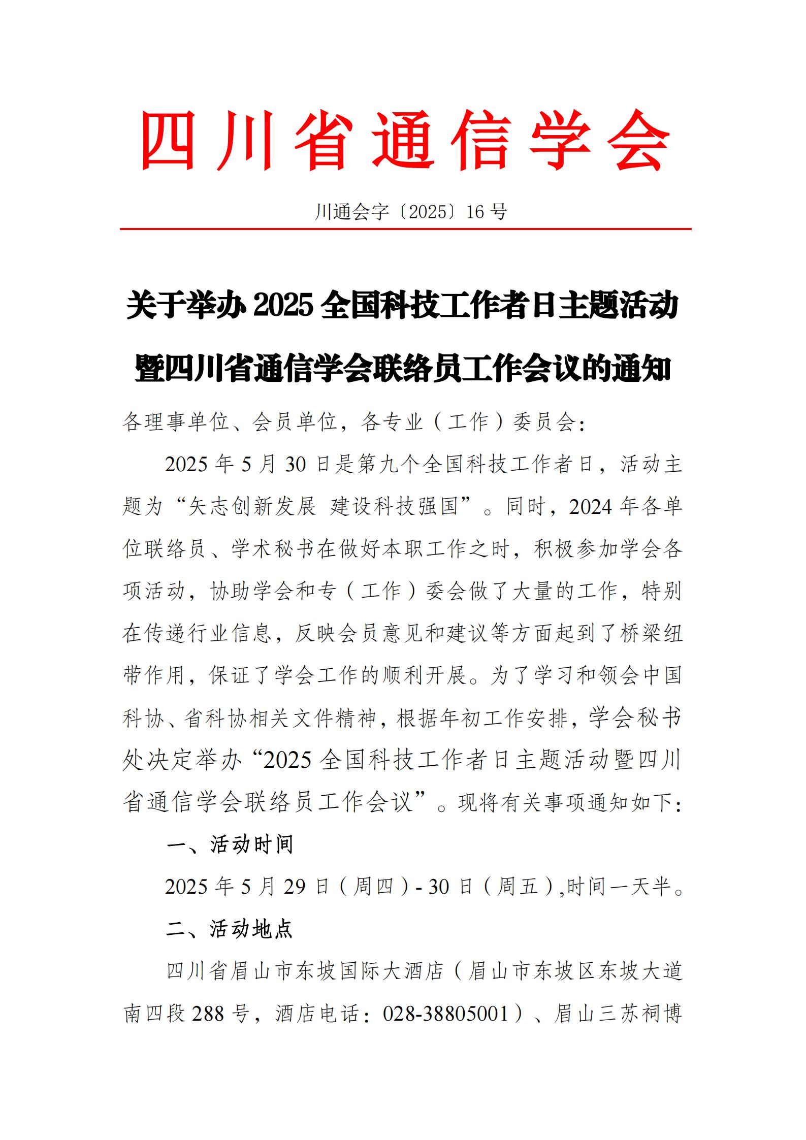 关于举办2025全国科技工作者日主题活动暨四川省通信学会联络员工作会议的通知