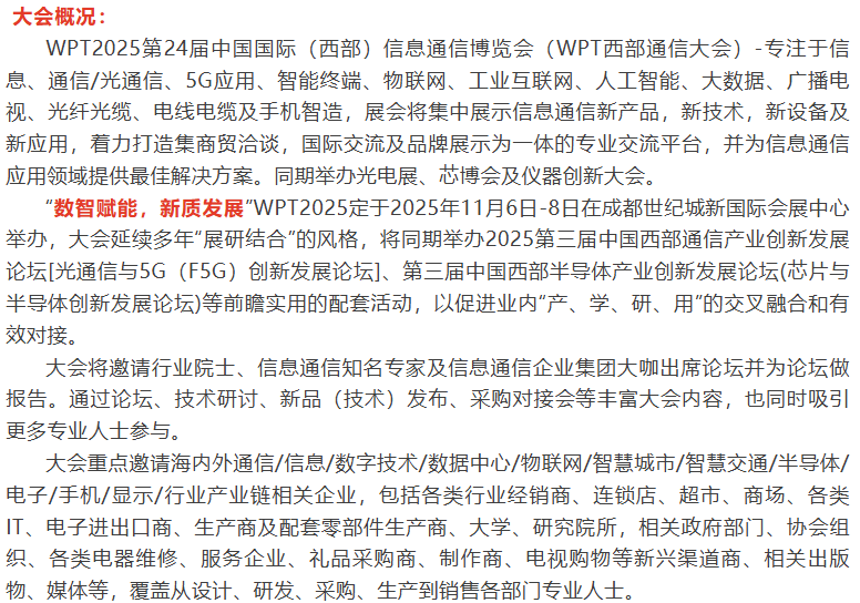 WPT2025第24届中国国际(西部)信息通信博览会