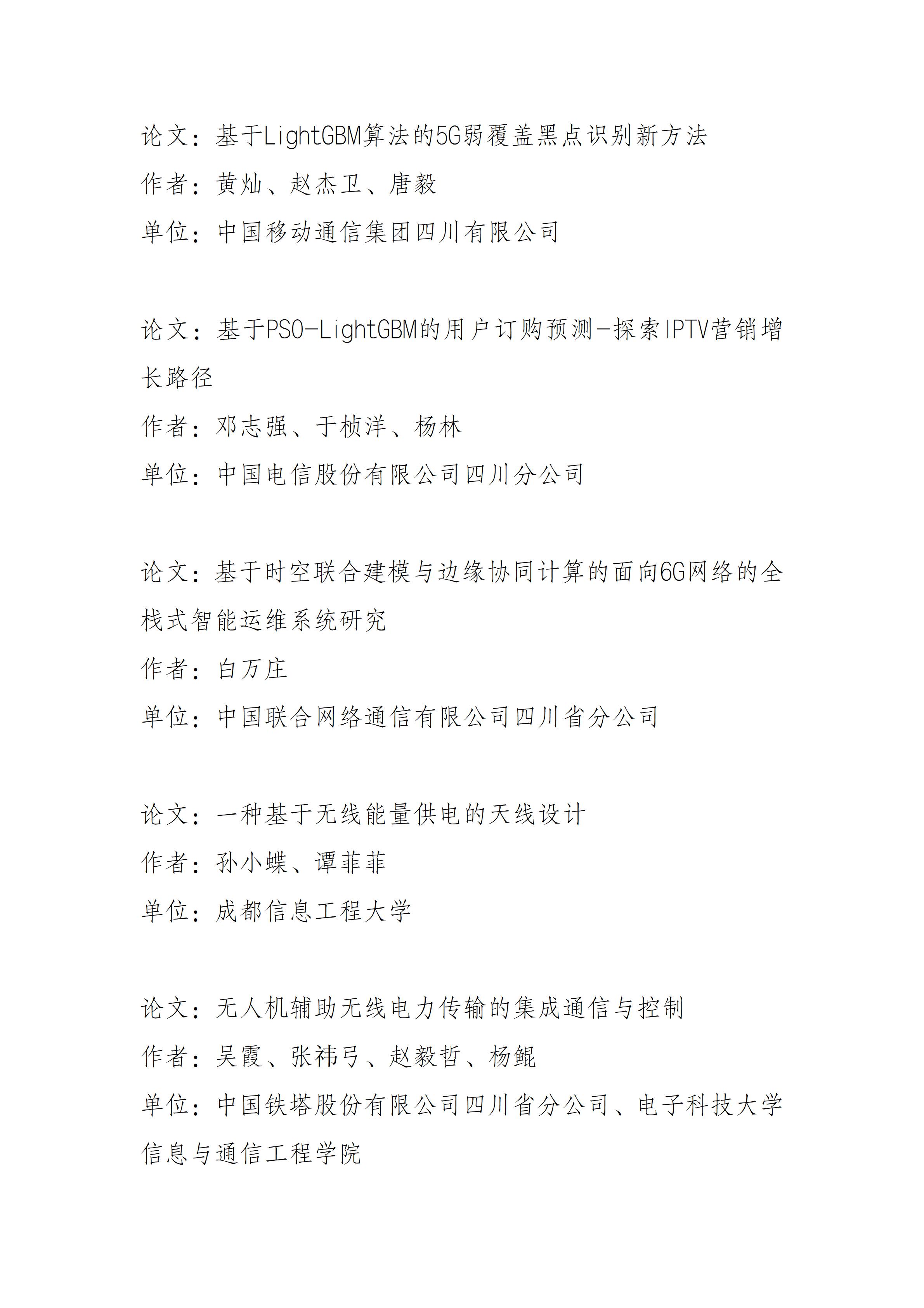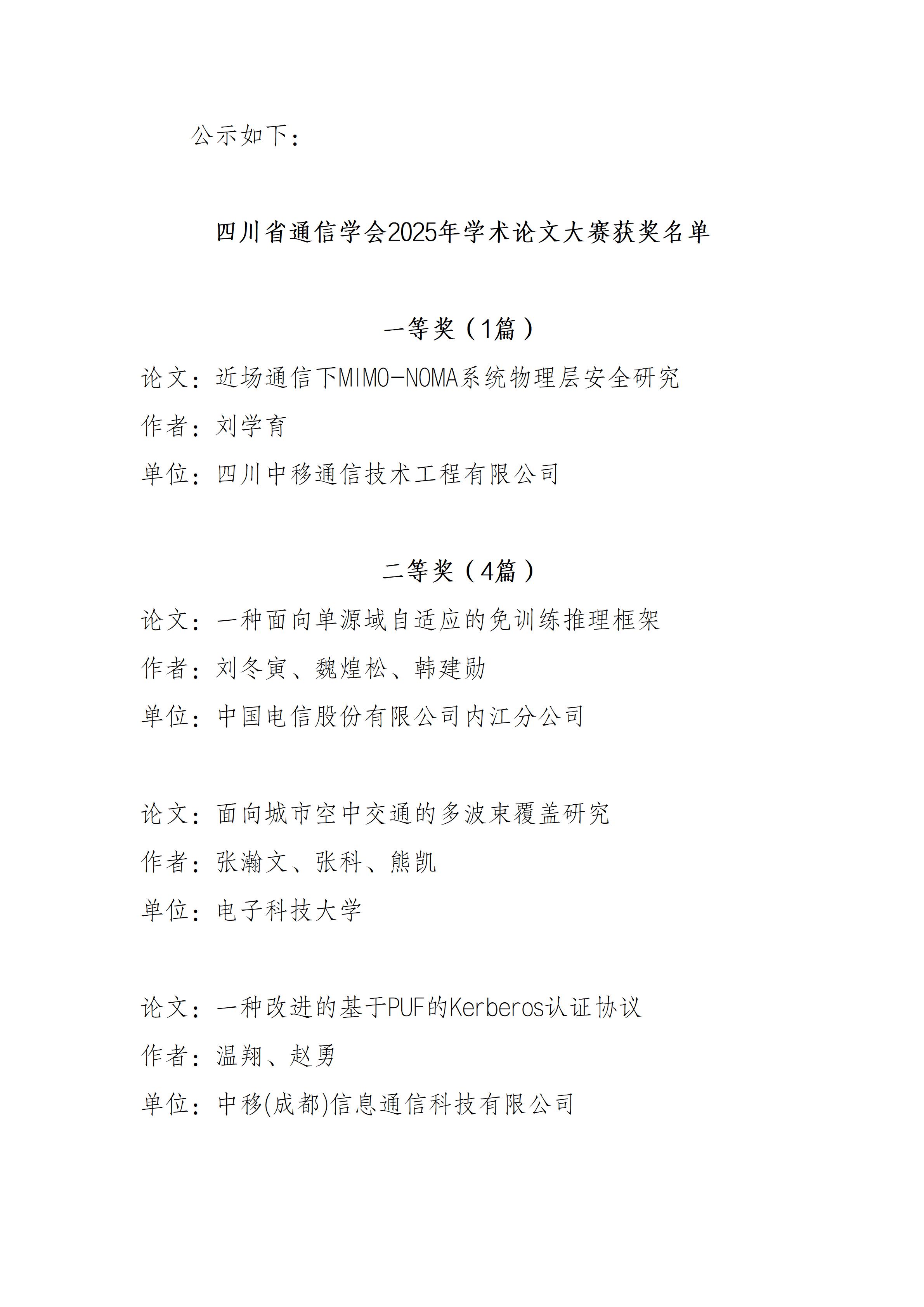 关于四川省通信学会2025年学术论文大赛获奖名单的公示