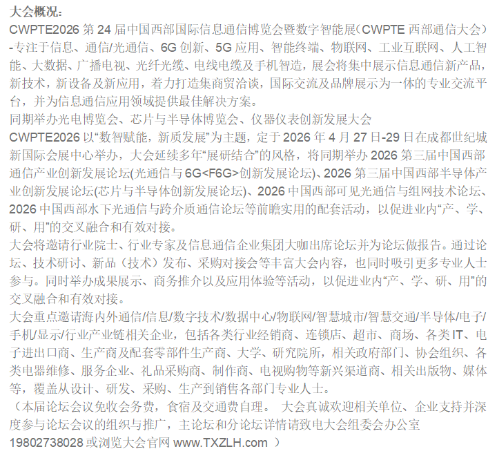 CWPTE2026第24届中国西部国际信息通信博览会