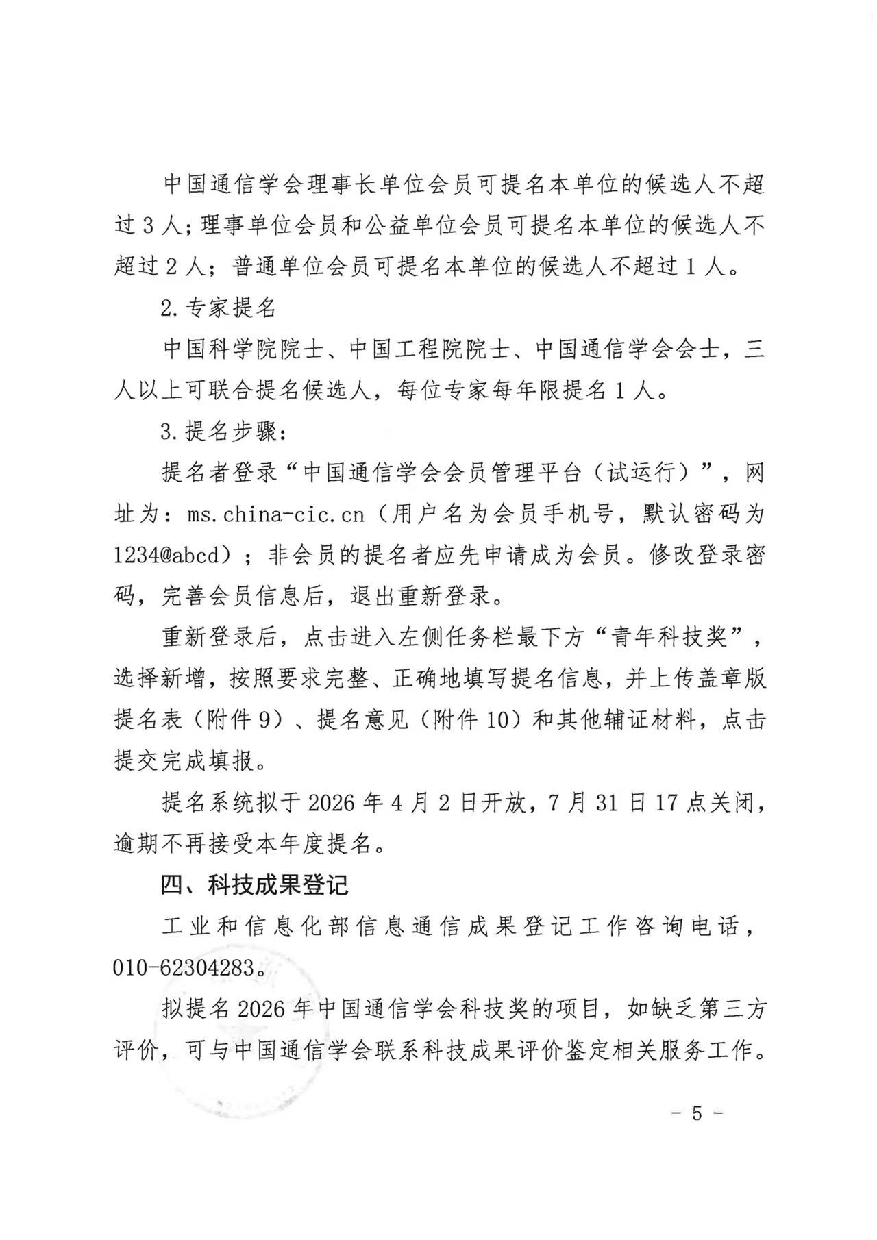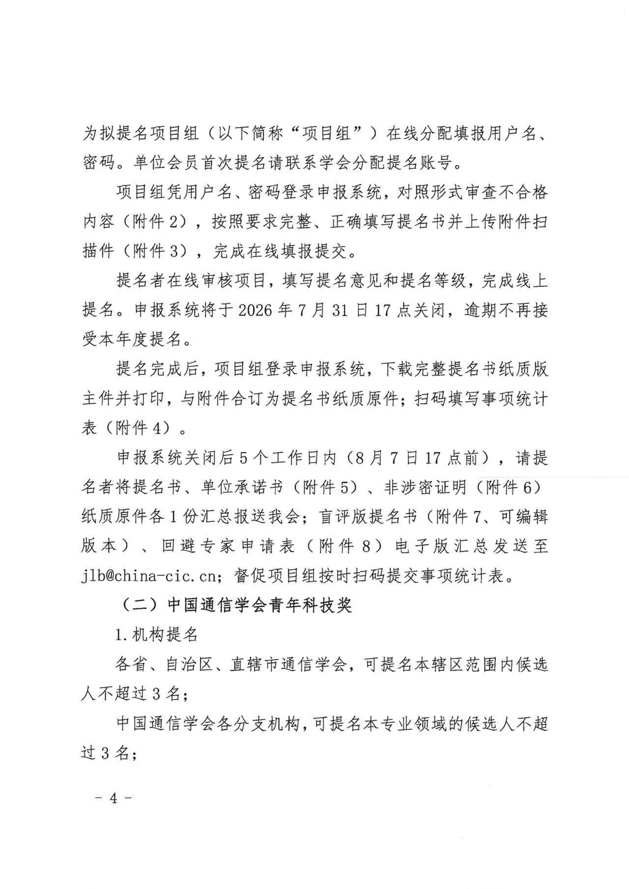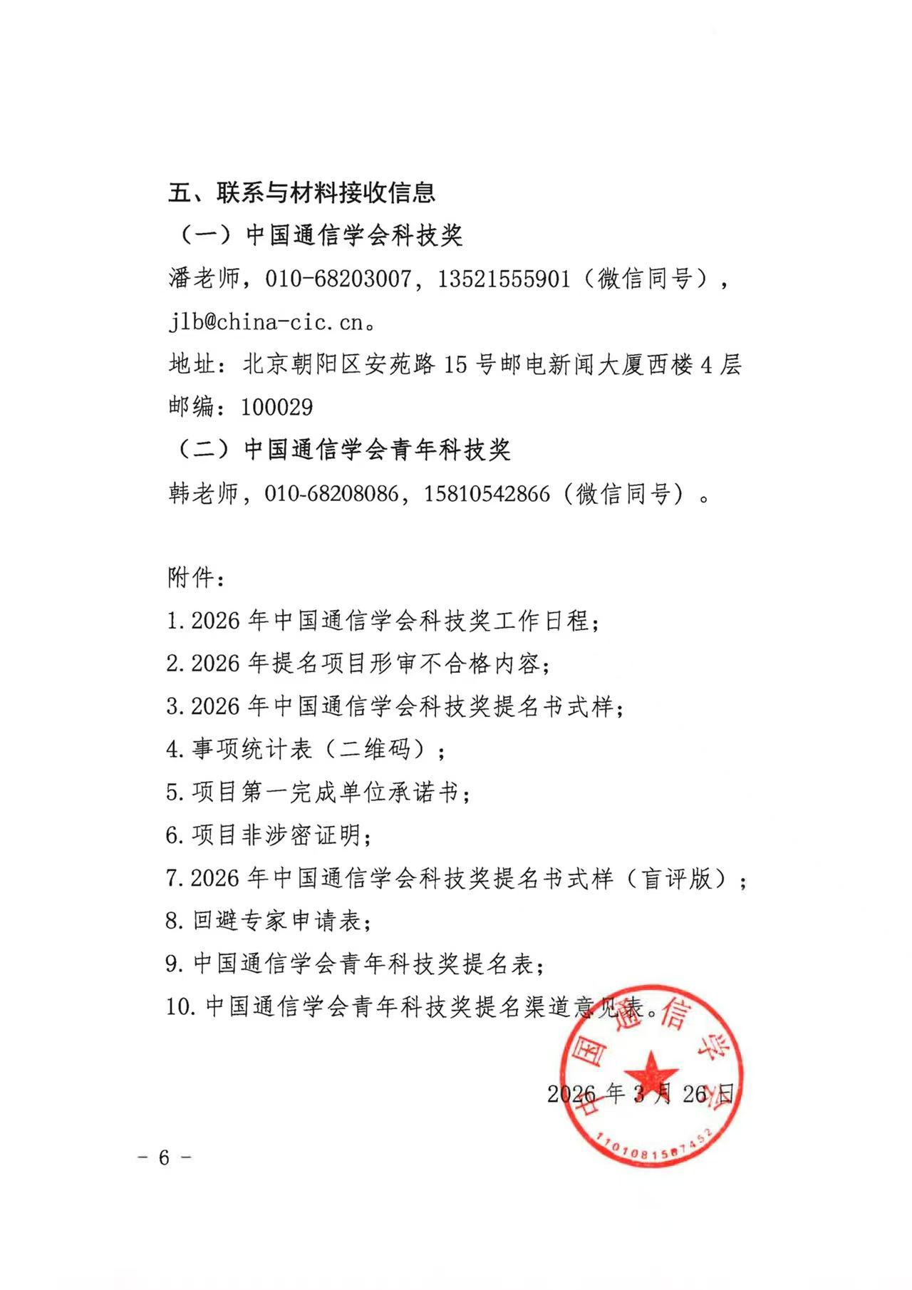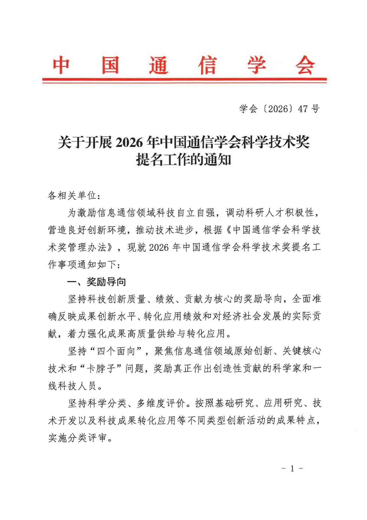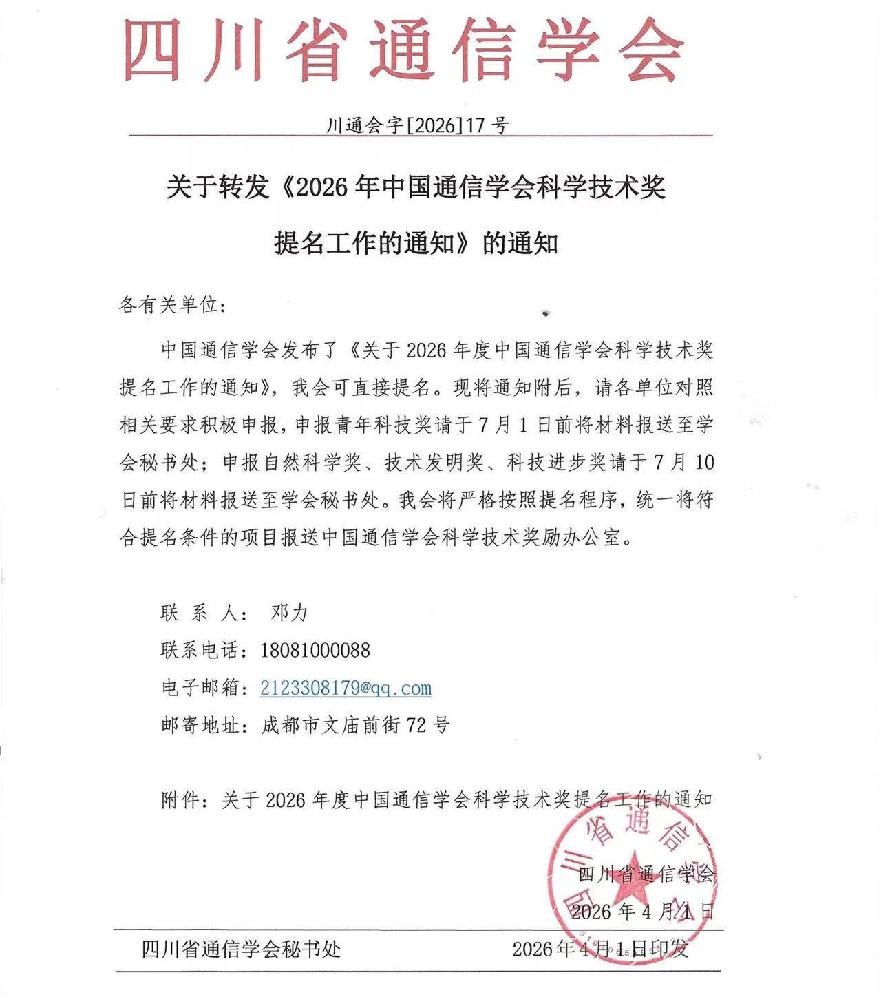 关于转发《2026年中国通信学会科学技术奖 提名工作的通知》的通知