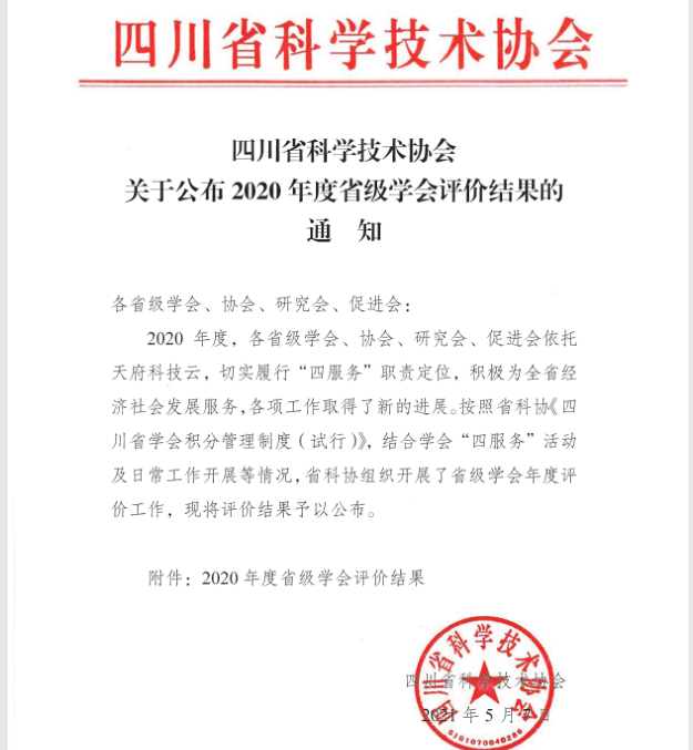 近日,四川省通信学会在四川省科学技术协会2020年度省级学会评价中被评为二等学会。省科协系统省级学会近200个,共有30个获得一、二等学会,四川省通信学会排位第18。