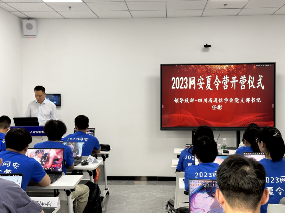 夏令营开营仪式上,四川省通信学会党支部书记、驻会副秘书长任彬出席并致辞。任彬对夏令营的举办表示肯定,并强调了网络安全对社会发展的重要性,鼓励学员们在夏令营中努力学习、提高自身素质,为网络安全事业贡献力量。
