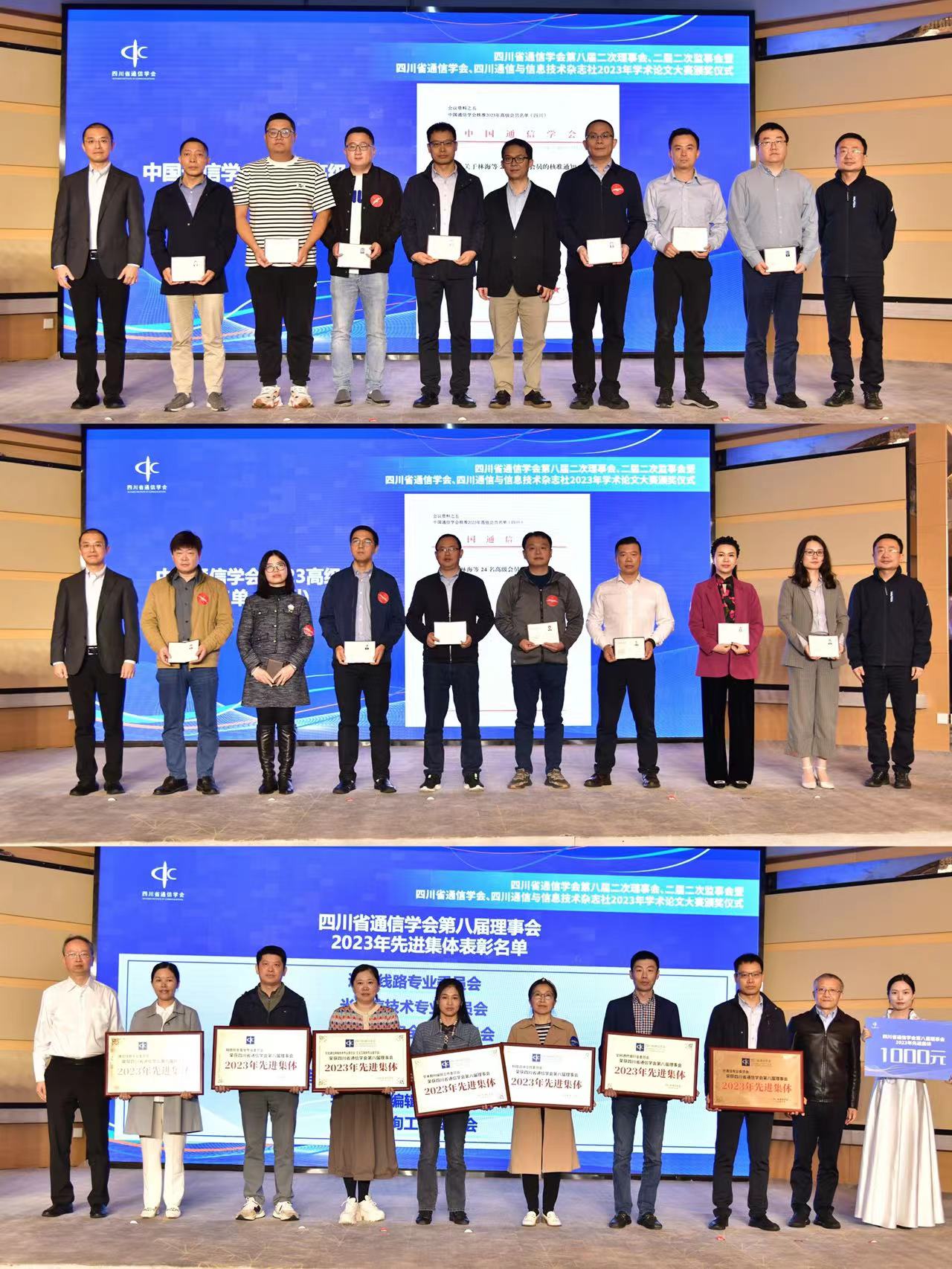 会上,隆重举行了2023年学术论文大赛颁奖典礼,四川省通信学会、四川通信与信息技术杂志社对一等奖、二等奖、三等奖获奖作者代表现场颁发了证书和奖金。
