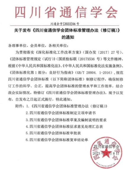 2月8日,《四川省通信学会团体标准管理办法(修订稿)》发布。