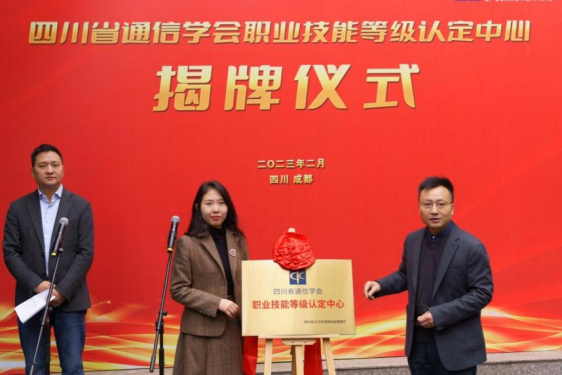 2月17日上午,四川省通信学会举办职业技能等级认定中心揭牌仪式。四川通信行业职业技能鉴定中心副主任郭媛媛、四川省通信学会副理事长兼秘书长任云出席揭牌仪式并致辞讲话。成都工业学院网络通信学院院长蔡方凯、四川科技职业技术学院院长罗勇以及四川省通信学会会员单位代表等共计40余人参加仪式。