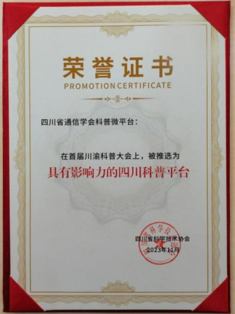 7月,经四川学会推荐,苟浩淞、朱策、袁诚3位专家被聘任为“中国通信学会科学传播专家”。