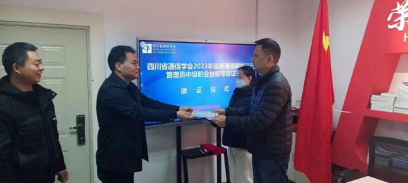 12月26日,四川省通信学会为首批获得职业技能等级认定信息通信运行管理员(中级)颁证。