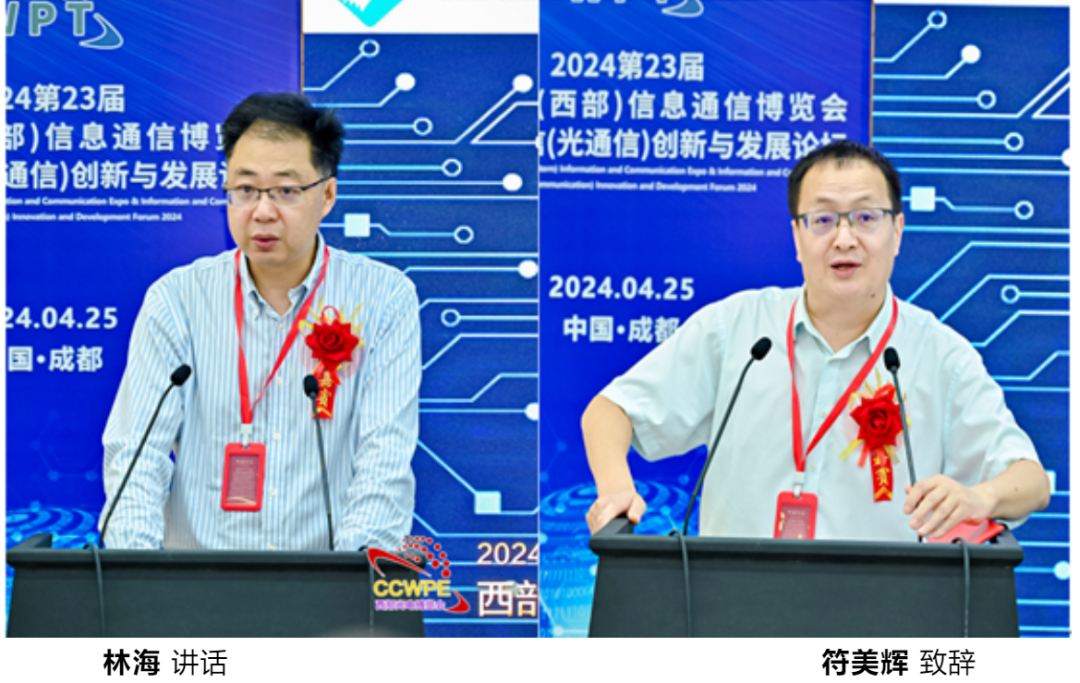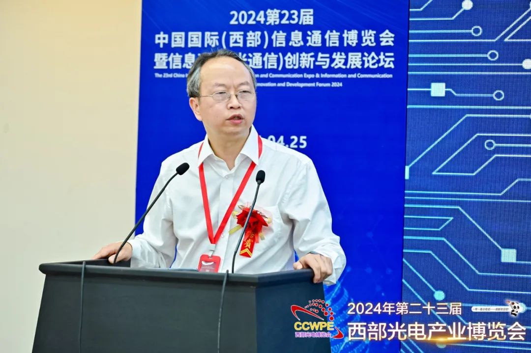 2024年4月24-26日,由四川省通信学会、四川省通信行业协会、耀润富生(重庆)国际贸易有限公司等单位联合主办的“2024年第二十三届西部光电产业博览会”在成都拉开帷幕。4月25日,在成都世纪城新会展中心博览会期间,四川省通信学会、四川省通信行业协会携手中国电信科协四川分会举办了一场高质量的“信息通信(光通信)创新与发展论坛”。四川省通信学会理事长单位中国电信四川公司副总工程师林海,四川省通信行业协会理事长、四川省通信产业服务有限公司总经理符美辉,四川省委决策咨询委员会委员、四川省通信学会名誉副理事长,西南交通大学信息科学与技术学院教授潘炜,四川省通信学会副理事长、电子科技大学信息与通信工程学院党委书记、教授冷甦鹏,四川省通信学会副理事长、中移(成都)信息通信科技有限公司副总经理、教授级高工苏郁,四川省通信学会副理事长兼秘书长任云,四川省通信学会党支部书记、驻会常务副秘书长任彬等领导和专家莅临现场。