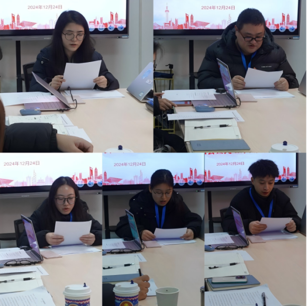 述职结束后,秘书处人员结合述职情况和工作情况,按照《秘书处员工能力态度综合评价表》对每位被评议对象进行打分评价(占比60%),并结合月度绩效考核(占比40%),现场统计出最终分数,按照得分高低评选出:母涵丹、李茜倩(兼)为“2024年度优秀员工”,评选出张悦、张程晨(兼)为“2024年度良好员工”,予以表彰奖励。