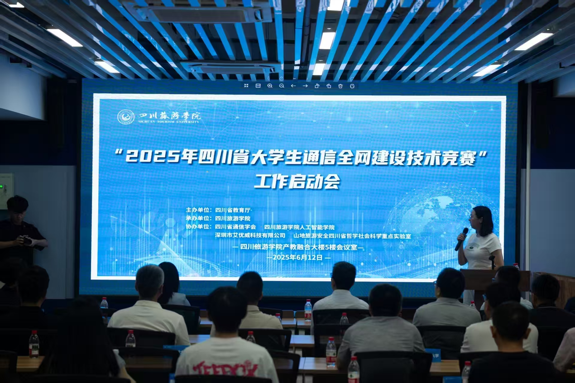 2025年6月12日,由四川省教育厅主办,四川旅游学院承办,四川省通信学会、四川旅游学院人工智能学院、深圳市艾优威科技有限公司、山地旅游安全四川省哲学社会科学重点实验室联合协办的2025年四川省大学生通信全网建设技术竞赛工作启动会议在四川旅游学院举办。四川省通信学会已经连续四届协办该项竞赛。