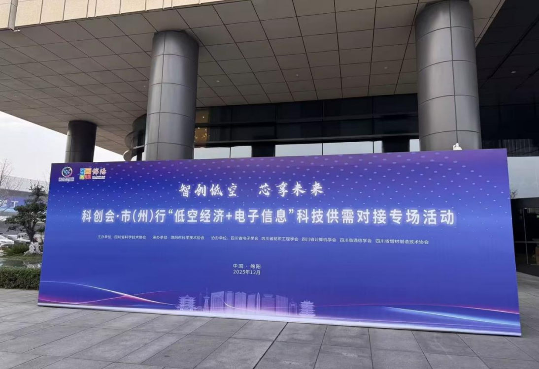 2025年12月16日,由四川省科学技术协会主办、绵阳市科学技术协会承办,四川省通信学会、四川省电子学会等单位协办的“低空经济 + 电子信息”科技供需对接专场活动在绵阳圆满举行。本次活动以“低空经济 + 电子信息”为主题,搭建了“政产学用”平台,通过项目发布、路演签约等形式促成供需对接,并配套“科服保姆”全流程跟踪服务,致力于打造永不落幕的科创生态。参加此次活动的有低空装备制造、电子信息、通信服务、金融投资等领域的企业代表和科技工作者代表,现场达成了多项合作意向。