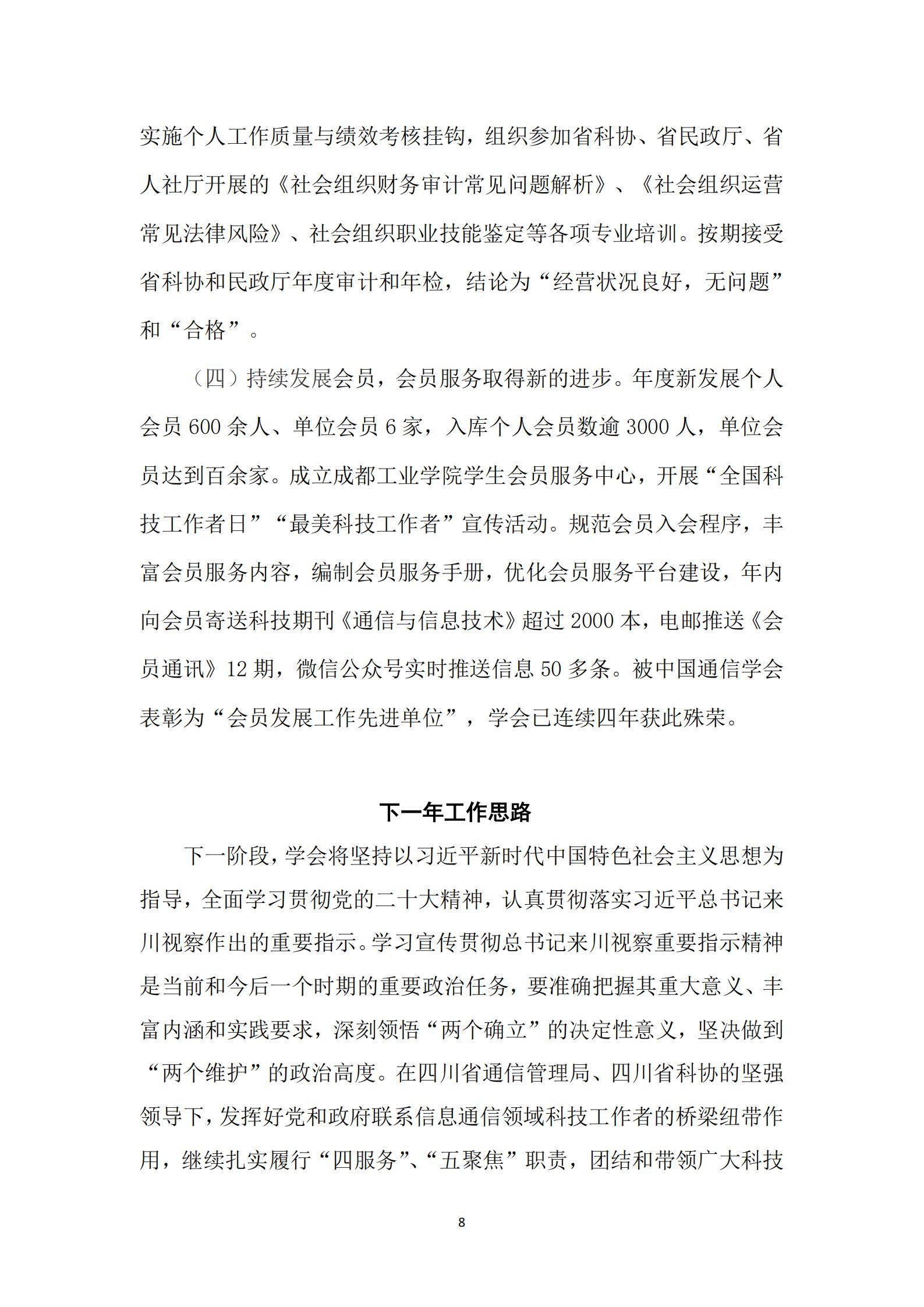 第八届理事会2023年度工作报告