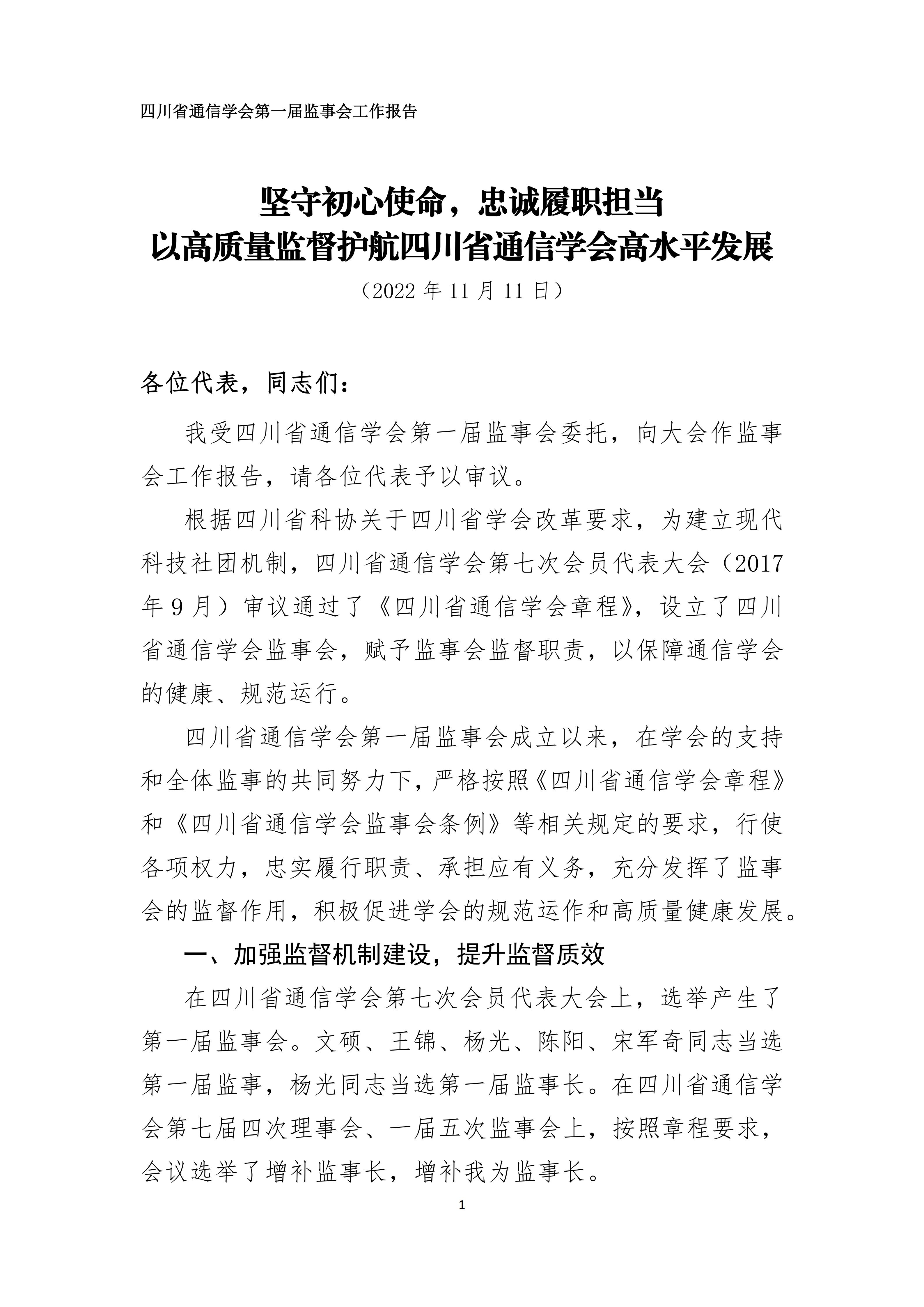 第一届监事会工作报告
